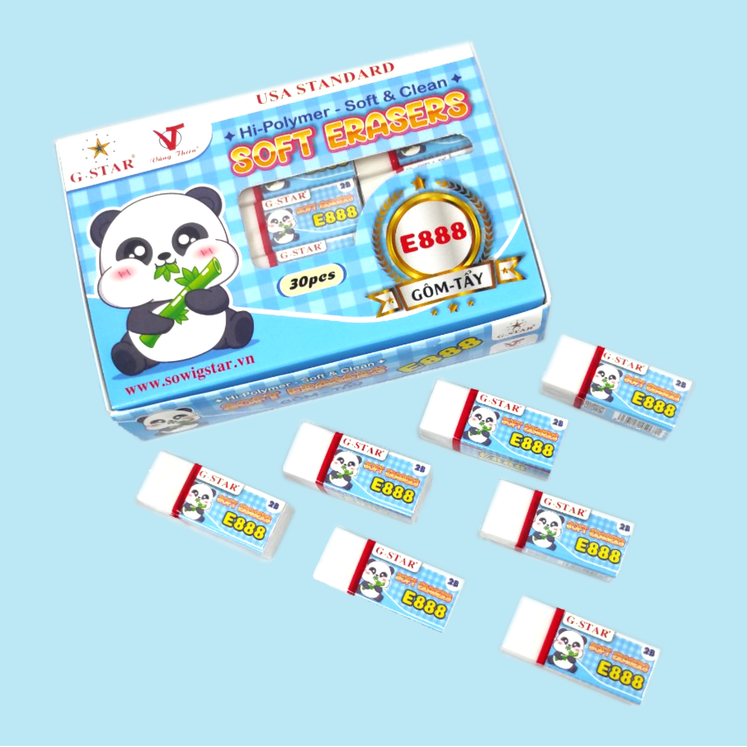• Gôm tẩy có kích thước lớn, cắt gọt khéo léo thành hình khối chữ nhật dễ dàng cầm nắm khi sử dụng.E 888E 888.b